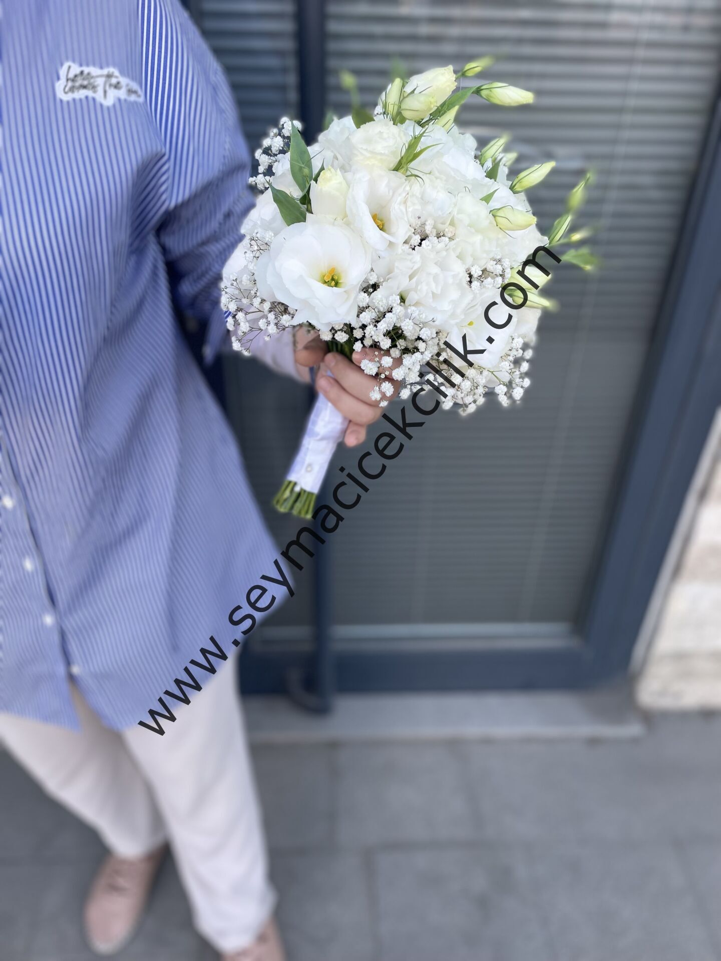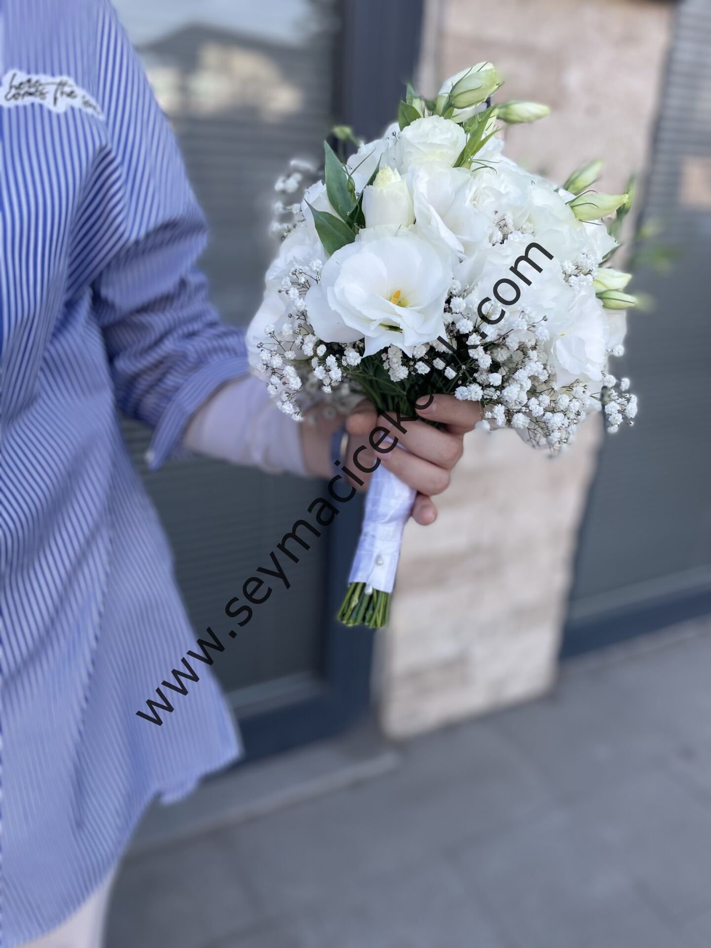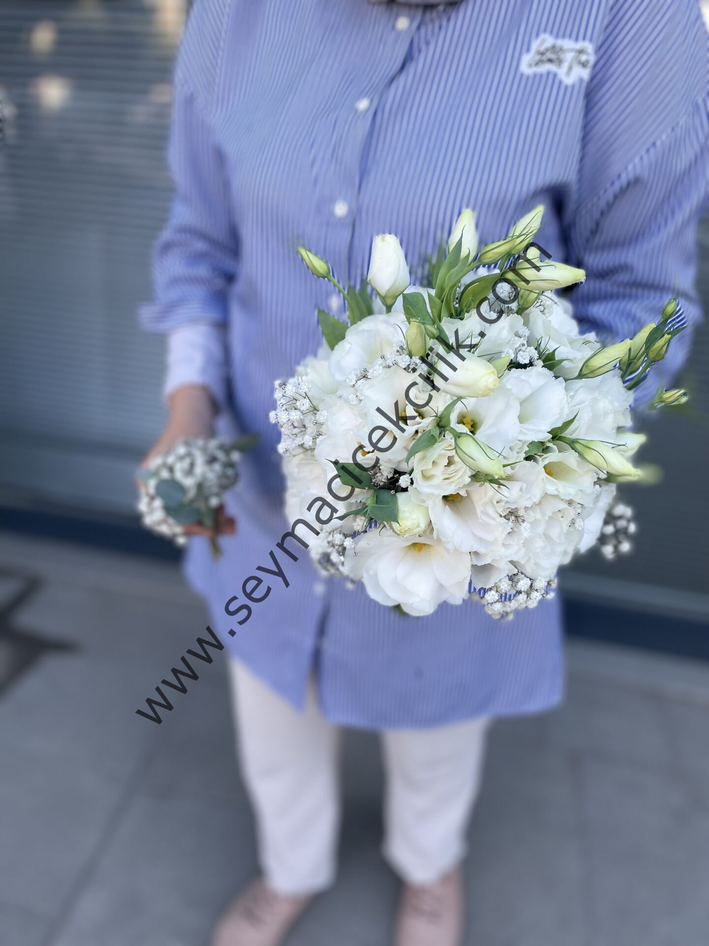 Gelin buketimiz lisyantus ve cipso ile hazırlanmıştır. (Orta boy)