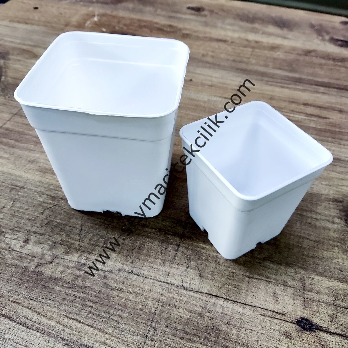 7 ve 9 cm lik Beyaz Üretim Kare Saksı