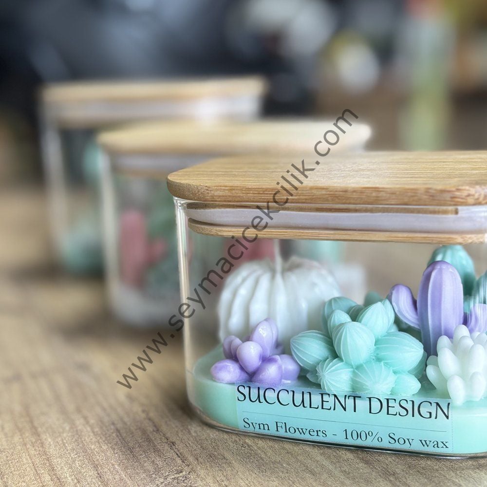 Bambu kapaklı borosilikat içine döküm yapılmıştır.