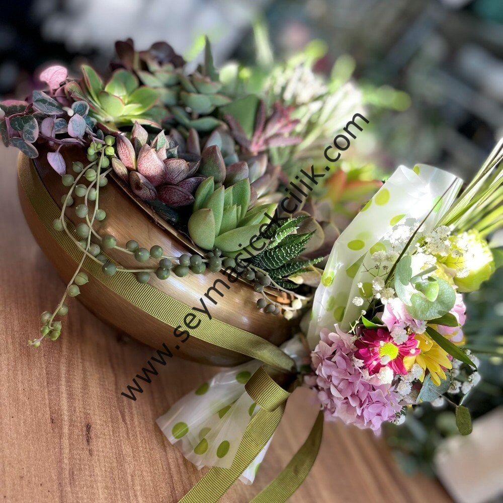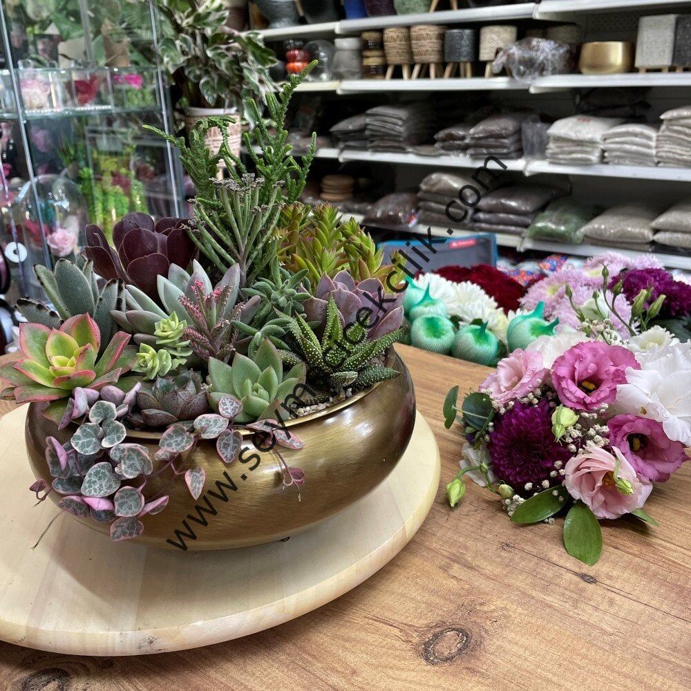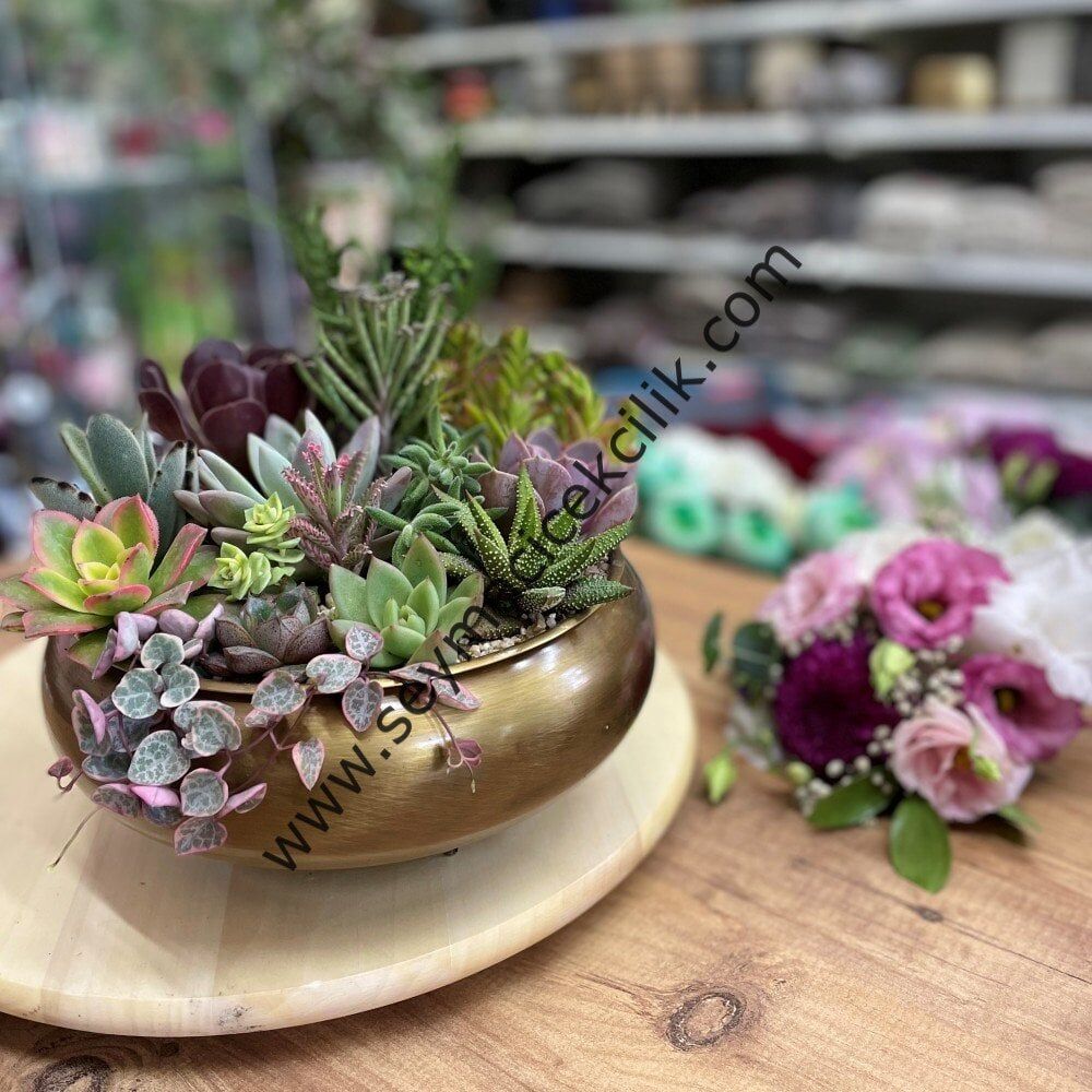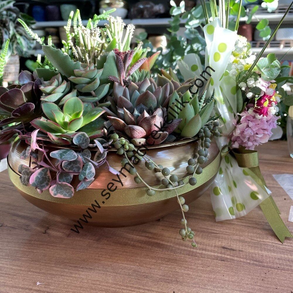 Aranjede 18 adet özel çeşitlerin de bulunduğu sukulent kullanılmıştır.